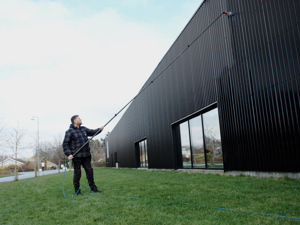 Vi tilbyder grundig facaderens, der fjerner snavs, alger og andet skidt, så jeres virksomhed altid fremstår præsentabel og velholdt.