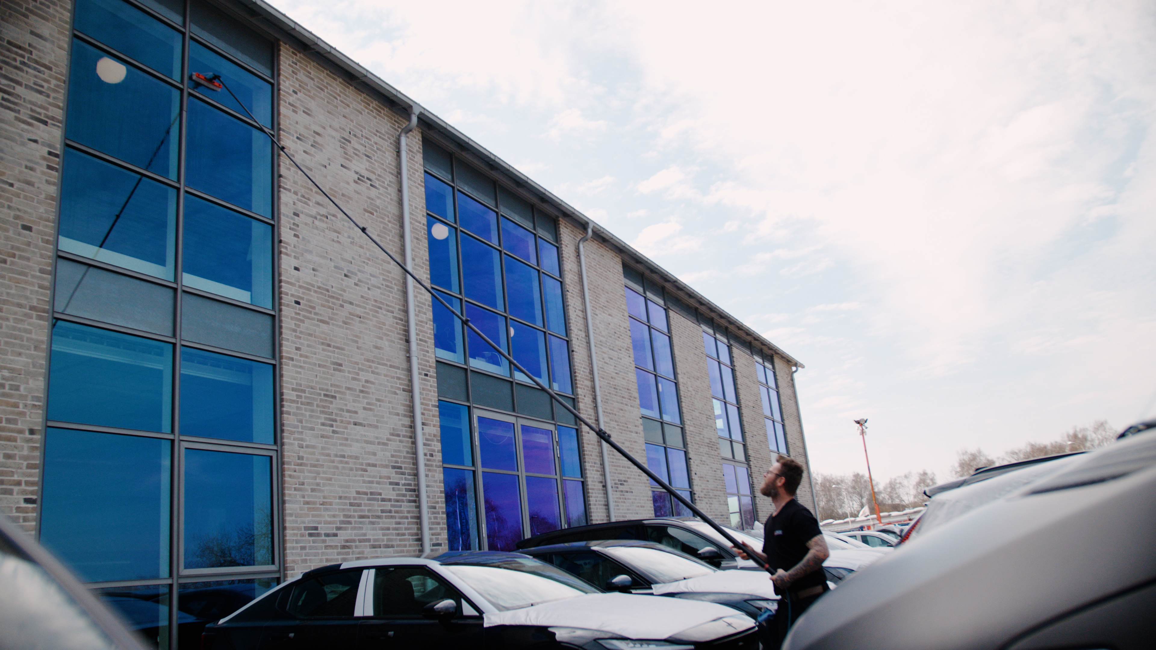 Vi anvender blødvandsanlæg til vores vinduespudsning for at sikre den højeste kvalitet.