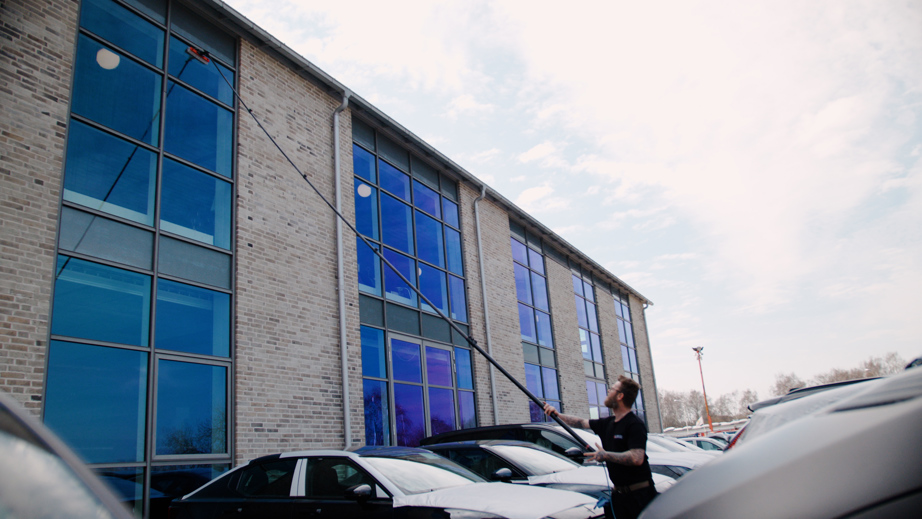Blødtvandet påføres via specialudstyr og rengør effektivt vinduer, rammer og karme og med vores teleskopstænger kan vi nå op til 15 meters højde uden brug af stiger, hvilket samtidig øger sikkerheden for medarbejderne.